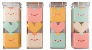 BORRACHA EM FORMATO DE CUBO E CORACAO.