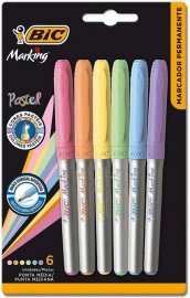 Caneta Marcador Bic Marking C/6 Cores Pasteis