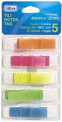 O Bloco Adesivo Tili Notes Tag 44x12mm 125 folhas 5 Cores é ideal para destacar pontos importantes de uma agenda, revista, livro, caderno e etc. É possível serem coladas e depois realocadas sem danificar as páginas, além de possibilitar escrita.