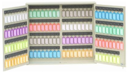 Armário fabricado em MDF na cor areia, com ótimo acabamento. Acompanha 127 chaveiros em cores sortidas e etiquetas de identificação. Possui fechadura na porta, com duas chaves. Acompanha parafusos para fixação do armário. - Dimensões: 555 x 470 x 50 mm