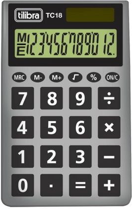 Calculadora de Bolso 12 Dígitos TC18 Cinza é perfeita para efetuar operações matemáticas básicas com rapidez e agilidade em qualquer lugar, seja em casa, na escola ou no trabalho. Alta qualidade, Cor: Cinza, Dígitos: 12, Fonte de energia: Dual, Leve e portátil, Modelo: Bolso, Operações: cálculos básicos, Resistente, Teclas de borracha, Formato: 112mm x 70mm.