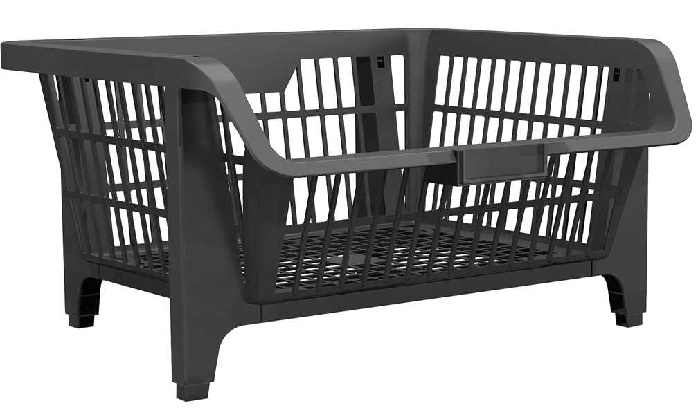 Possui estrutura desmontável que permite o encaixe de um cesto dentro do outro, facilitando sua armazenagem e transporte. Ao ser montado, pode ser utilizado individualmente ou como expositor, pois possui pés que se encaixam e possibilitam que vários cestos fiquem sobrepostos, promovendo a apresentação de diversos produtos.