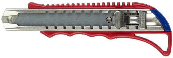 Estilete largo ideal para cortes em geral, corpo em plástico anatômico, com trava de segurança.